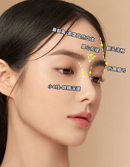 3.眉心凹陷不能单纯加高眉弓骨,中心也要过渡;并和鼻骨衔接流畅,形成自然的双c线条