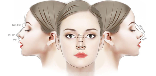 而这个角度越小,立体度就越高,视觉上就会显得鼻子高挺。
