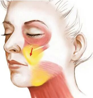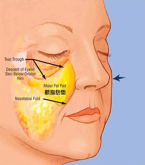 特点:苹果肌明显下垂,法令纹加深,面部轮廓松弛。