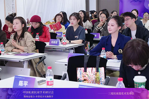 本次研讨会的亮点之一,是“三度抗衰莲花术”的首次发布与实操教学环节。该技术以“立体修复、自然和谐”为理念,通过多维度、分层式的抗衰策略,旨在实现私密功能与美学的统一。在“珠联璧合·并蒂花开”的实操教学中,专家们详细的分析技术要领,将学术理论与临床操作无缝衔接,提升了与会者的实操能力与综合判断力。
