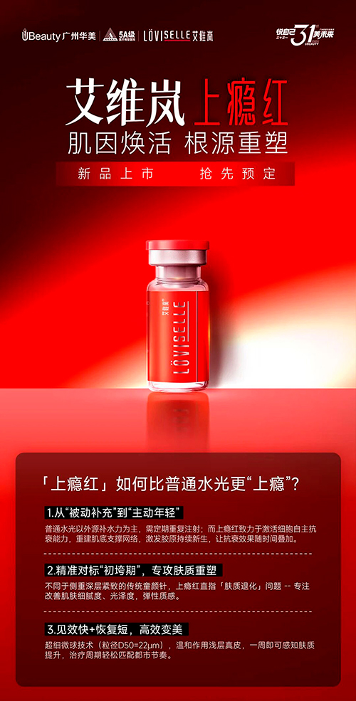 艾维岚·上瘾红是圣博玛旗下品牌最新推出的第三代童颜水光新品,作为艾维岚家族的新成员,它延续了聚左旋乳酸的胶原再生优势,通过激活皮肤自身的修复和再生能力实现“肌因焕活”。