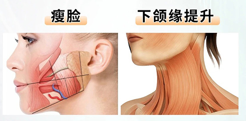 下颌缘提升是颈阔肌,收紧下巴到耳朵的线条,增强侧面轮廓的精致度。